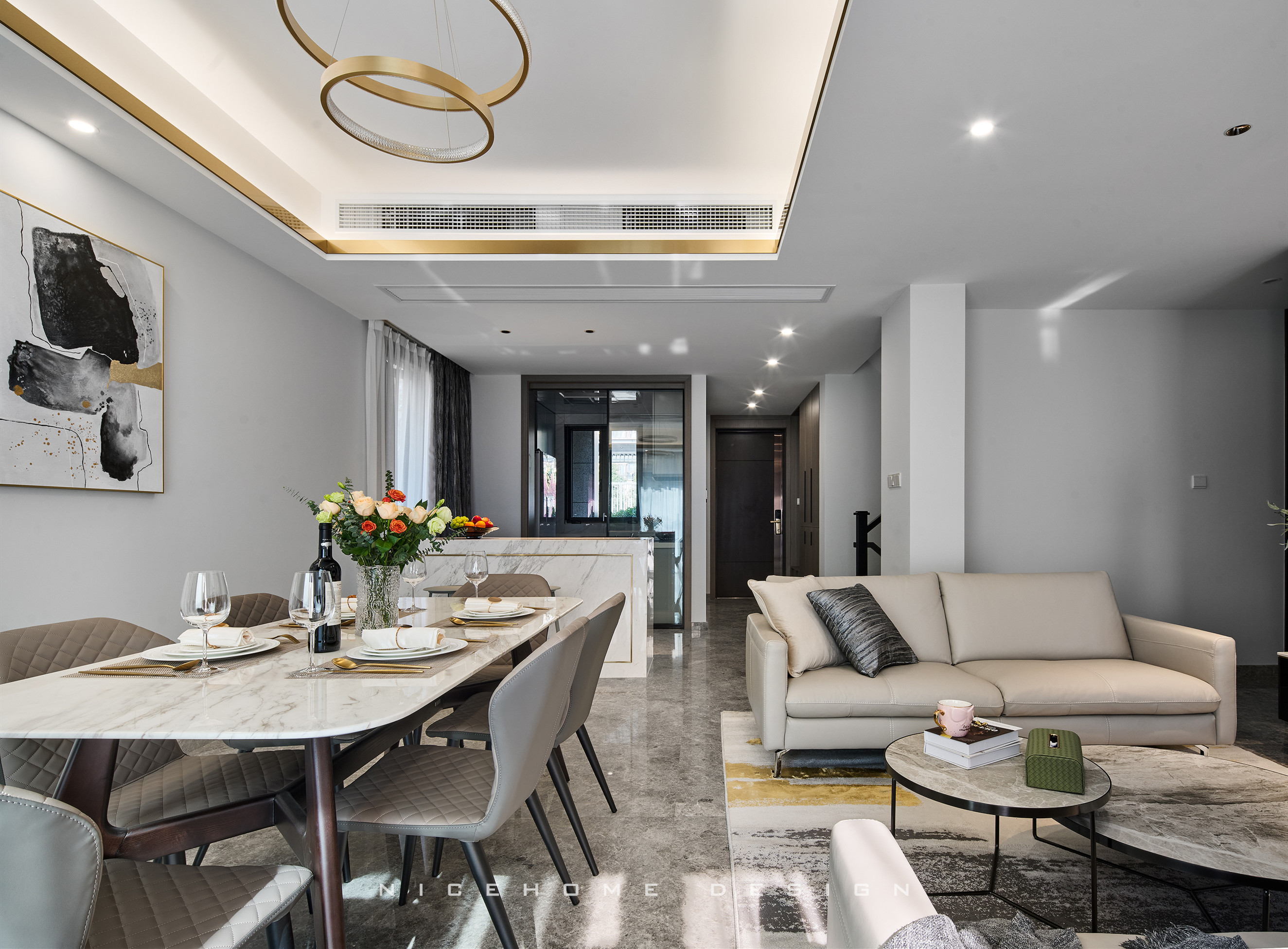 讓這個(gè)灰色的現(xiàn)代空間被暈染得更加柔和