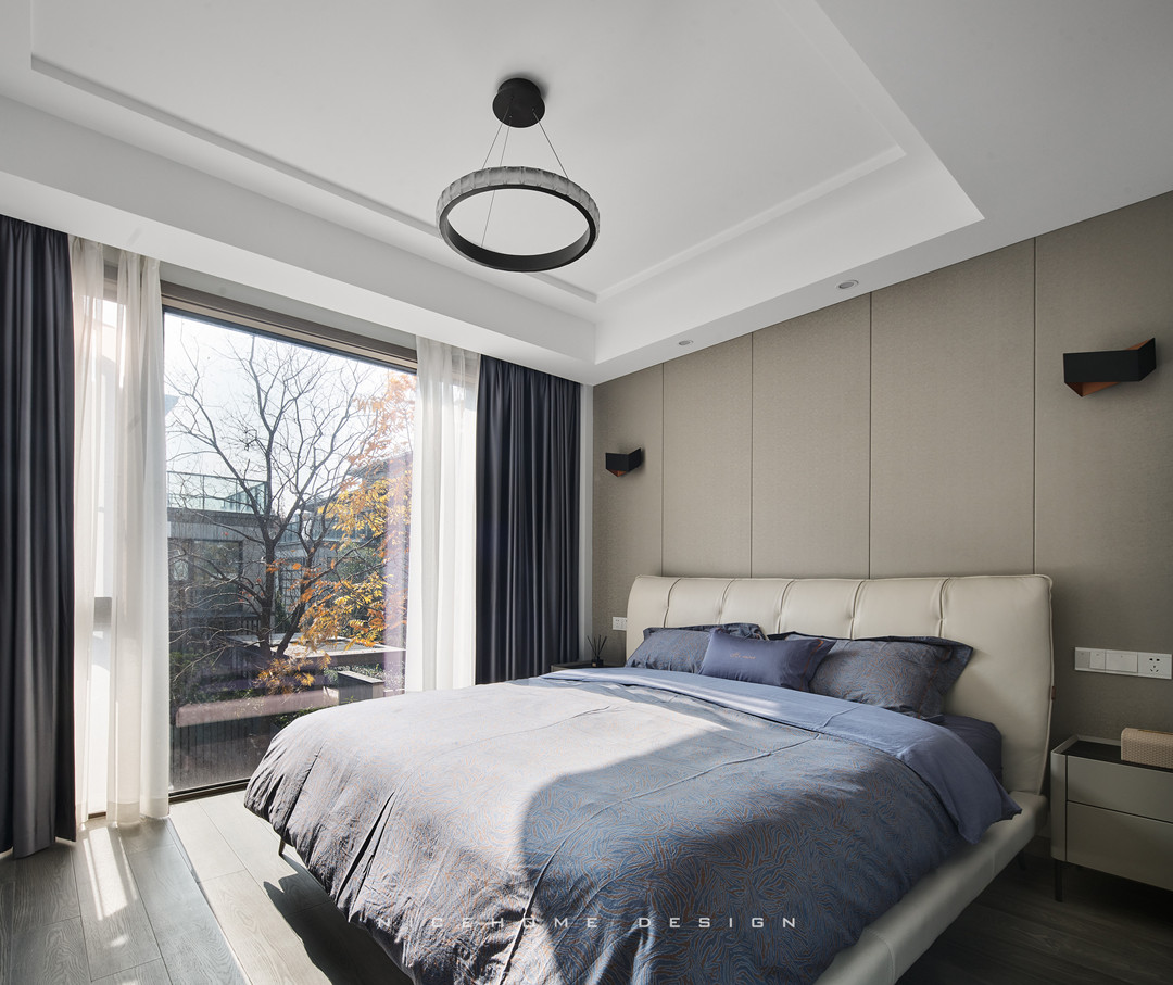 主臥延續(xù)了簡(jiǎn)約的空間基調(diào)