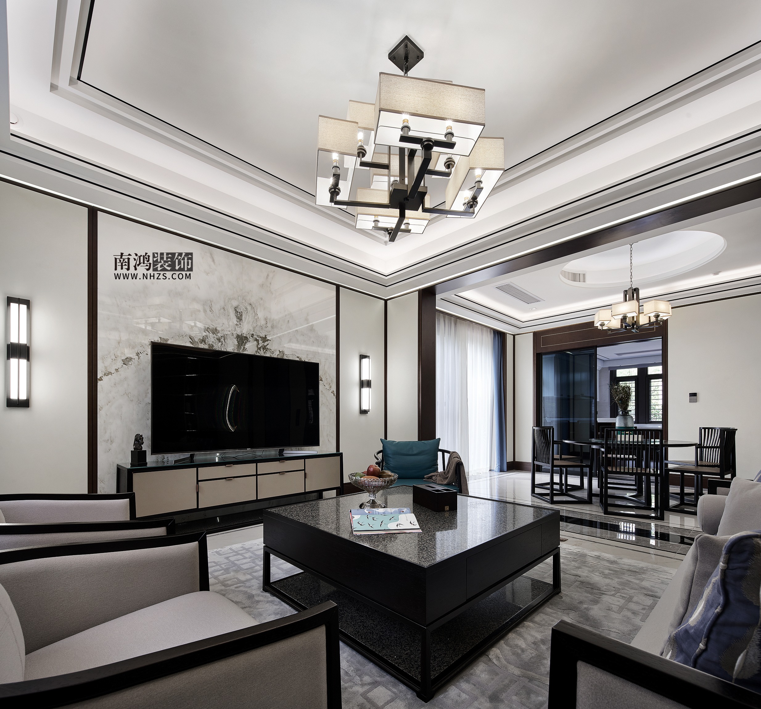客廳的風(fēng)格上提取了中式文化的精髓