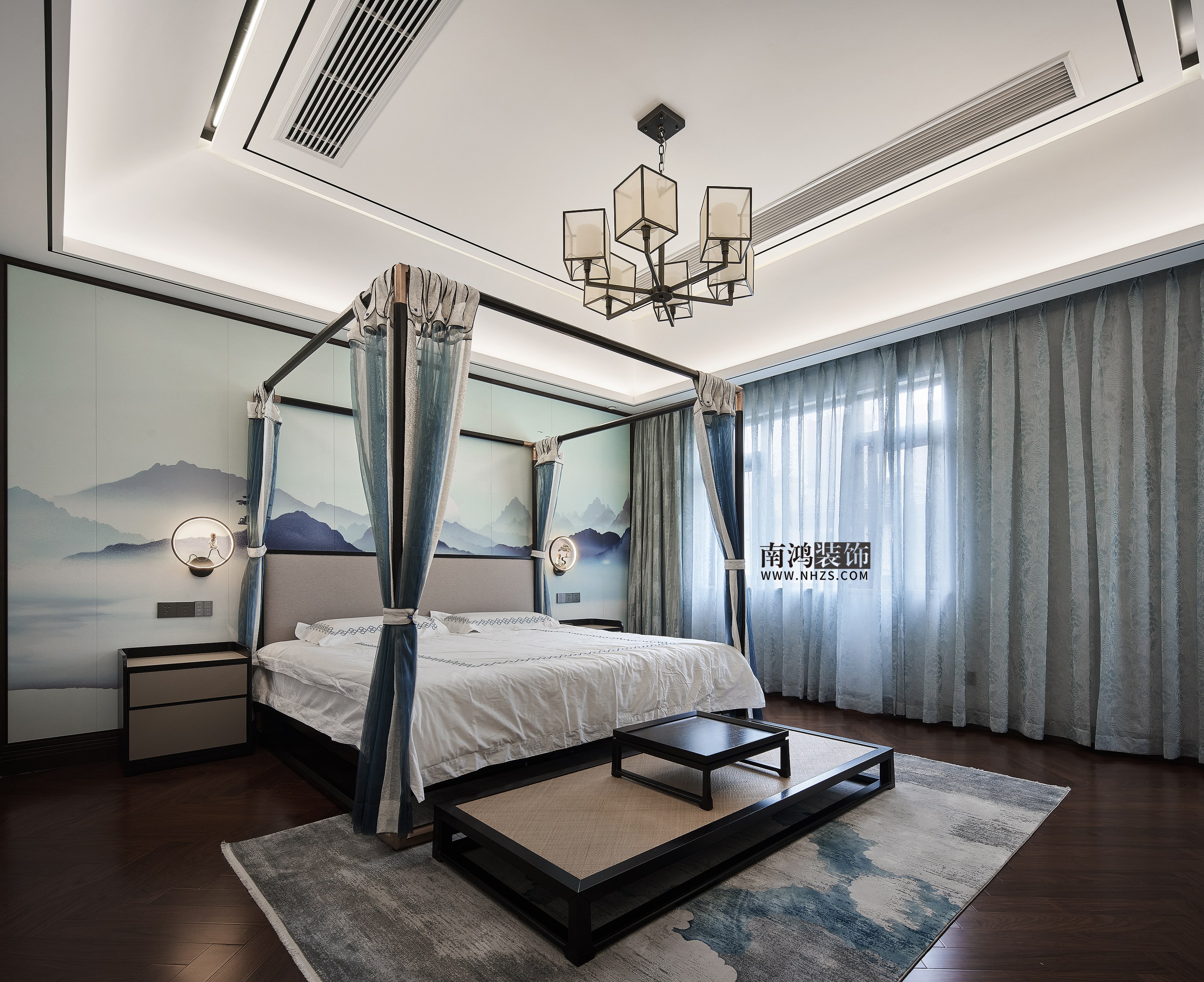 主臥背景以一副山水畫徐徐展開