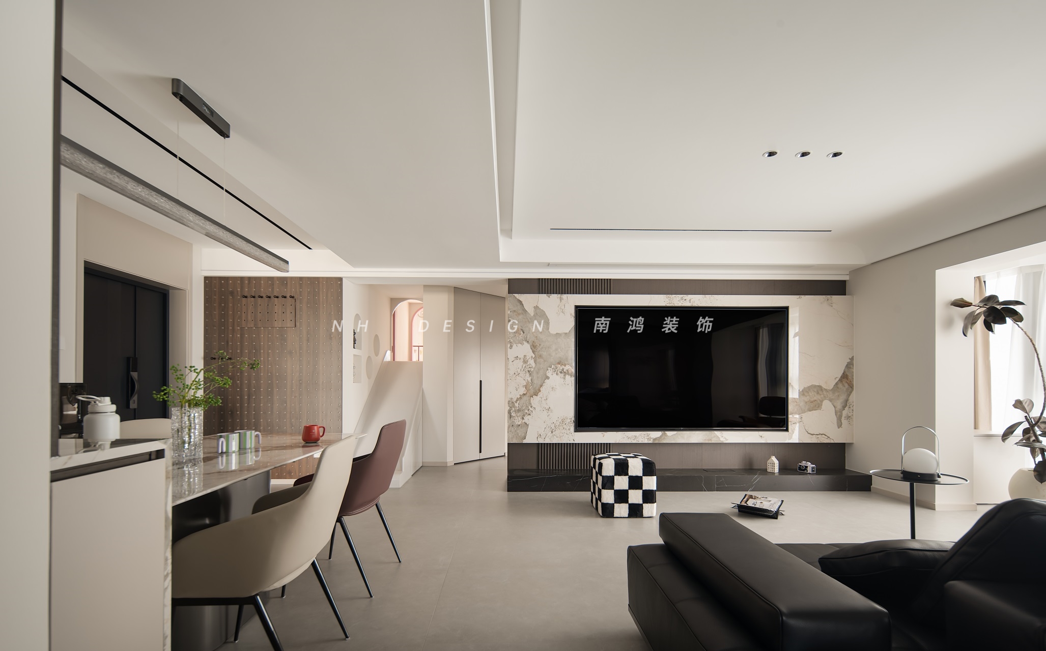客廳的視野通透而舒適,清晰的線條構(gòu)建規(guī)整序列感,自然光帶入暖意,描畫歸家的寧謐之景。